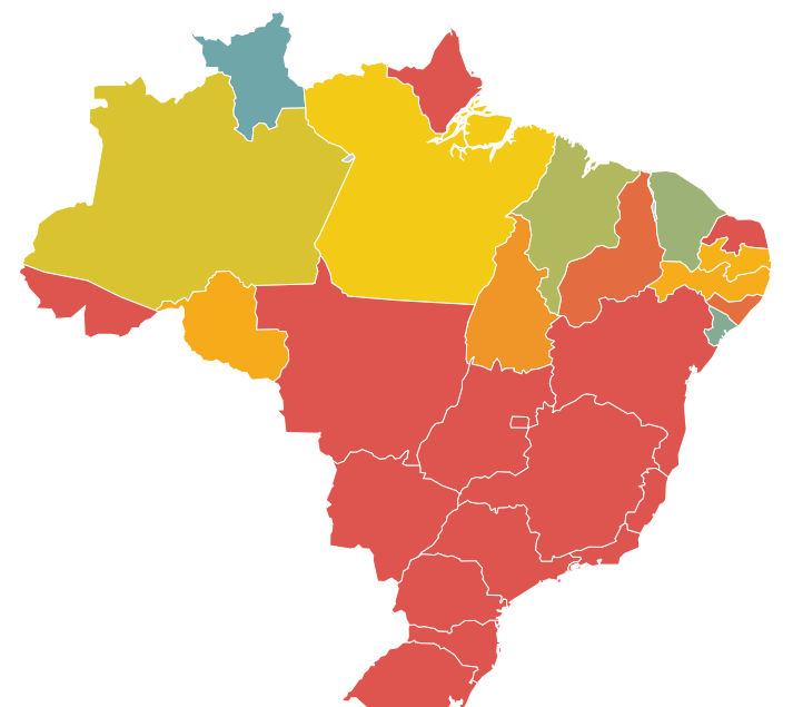 São Paulo has the largest number of probable cases of dengue fever (2,069,131). Next are Minas Gerais (1,698,369), Paraná (644,507) and Santa Catarina (363,850). The states with the lowest number of probable cases are Roraima (546), Sergipe (2,480), Acre (4,649) and Rondônia (5,046).