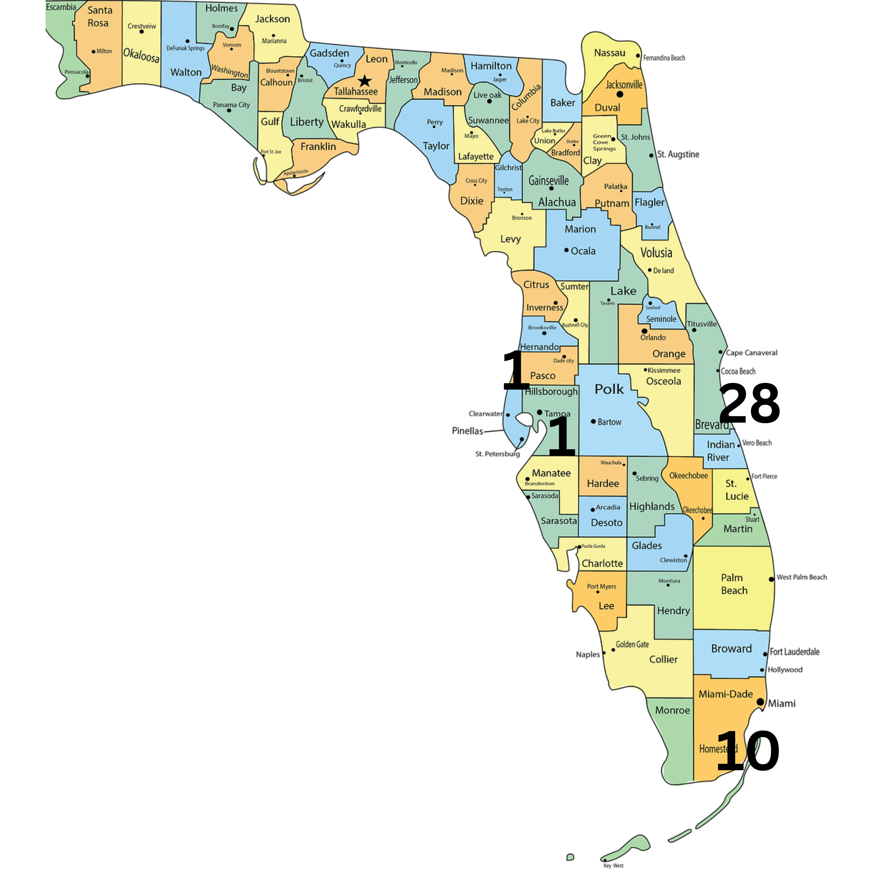 Counties reporting cases were: Broward (4), Collier, Hillsborough, Lake, Miami-Dade (3), Palm Beach, and Seminole (2). Countries of origin were: Bangladesh, Bolivia, Brazil (2), Cuba (4), India (2), Indonesia, and Sri Lanka (2).