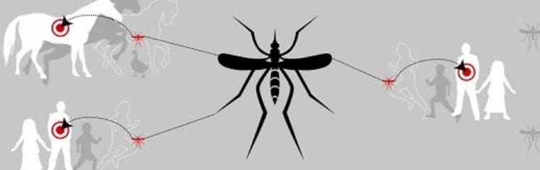 Wild birds and mosquitoes (especially of the Culex genus) are the natural reservoirs of the virus, and mosquito bites are the main route of transmission to humans. Other routes have been documented, although much less frequent, such as organ transplant, blood transfusions and mother-to-child transmission during pregnancy. There is no evidence of human-to-human transmission of WNV through contact with an infected person. The virus is known to infect other mammals, especially equines, but also dogs, cats, rabbits and other species.
