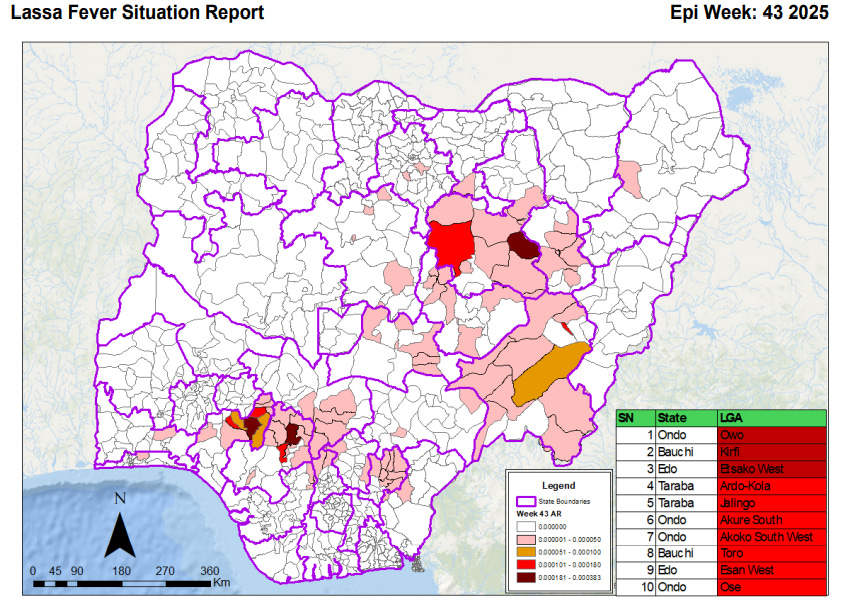 During the first 10 months of 2025, the Nigeria Centre for Disease Control and Prevention (NCDC) reports 995 confirmed Lassa fever cases and 176 deaths.